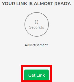 5- Se te volverá a redireccionar y tendrás que esperar 15 segundos hasta que el botón «Get Link» se desbloqueé